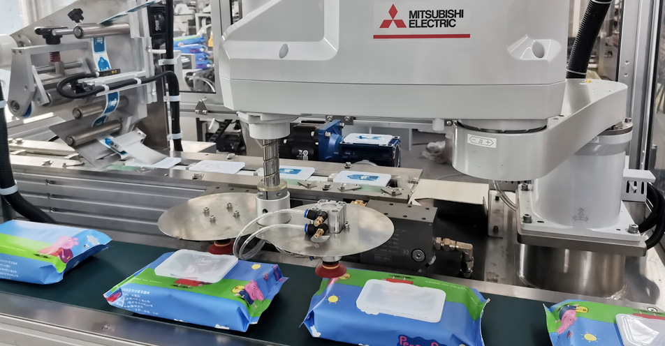 本機使用三菱機器人高剛性機械臂,視覺識別技術(shù)、傳送帶跟著技術(shù)等完美結(jié)合。在線可以完成自動取蓋、貼標(biāo)、涂膠、粘蓋等一系列動作,更換蓋子規(guī)格時,在觸摸屏操作切換。節(jié)省人力,從而降低用工成本。極大地提高生產(chǎn)效率和產(chǎn)品合格率。